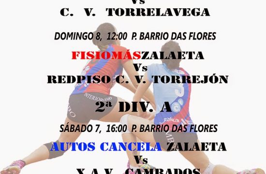 SF2 Dous partidos este fin de semana de SF2, os que imos ter no Barrio. O FisiomásZalaeta enfróntase o sábado ás 19:00 ao C.V. Torrelavega, primeiro clasificado, e o domingo ás 12:00 ao Red…